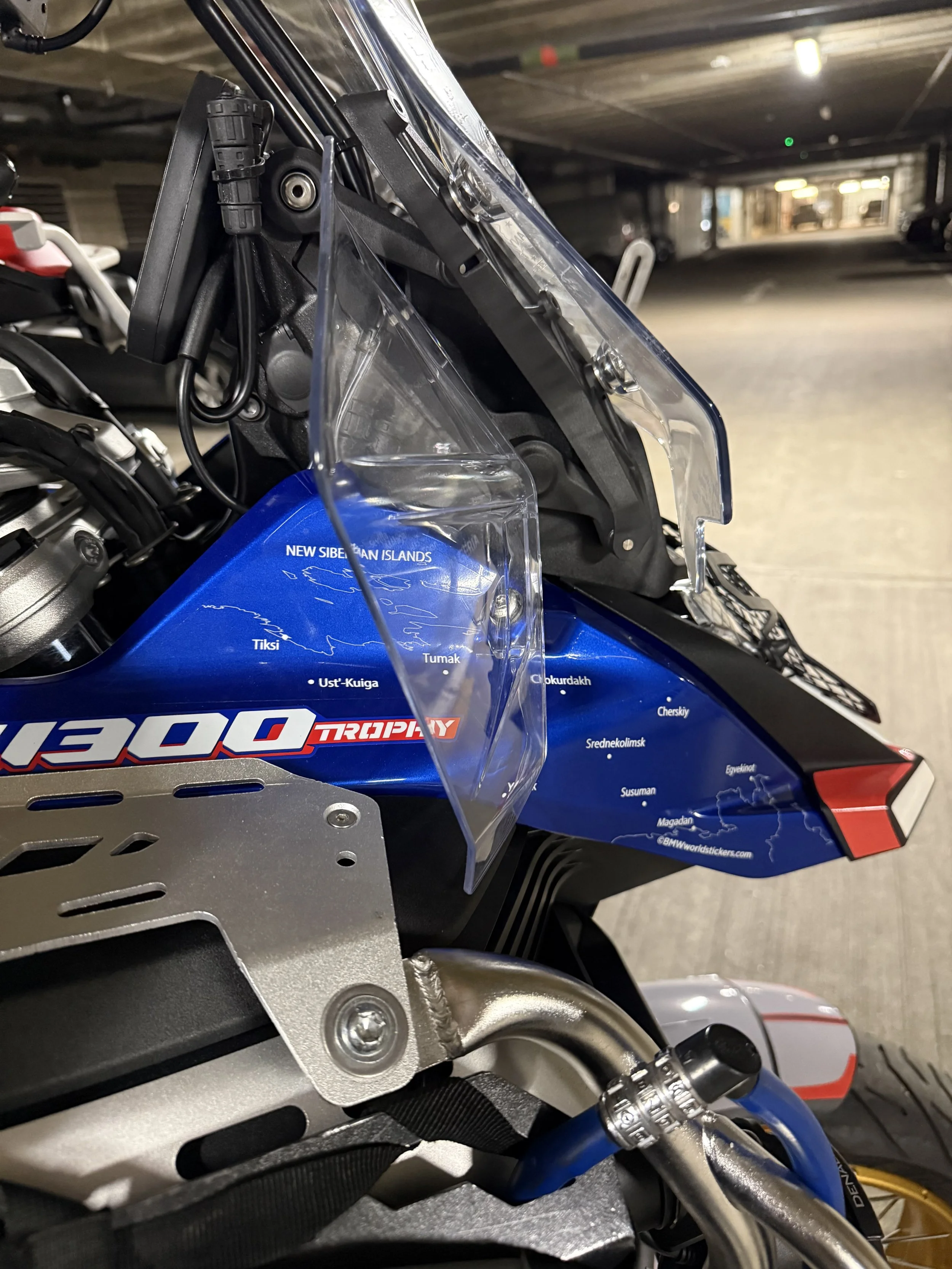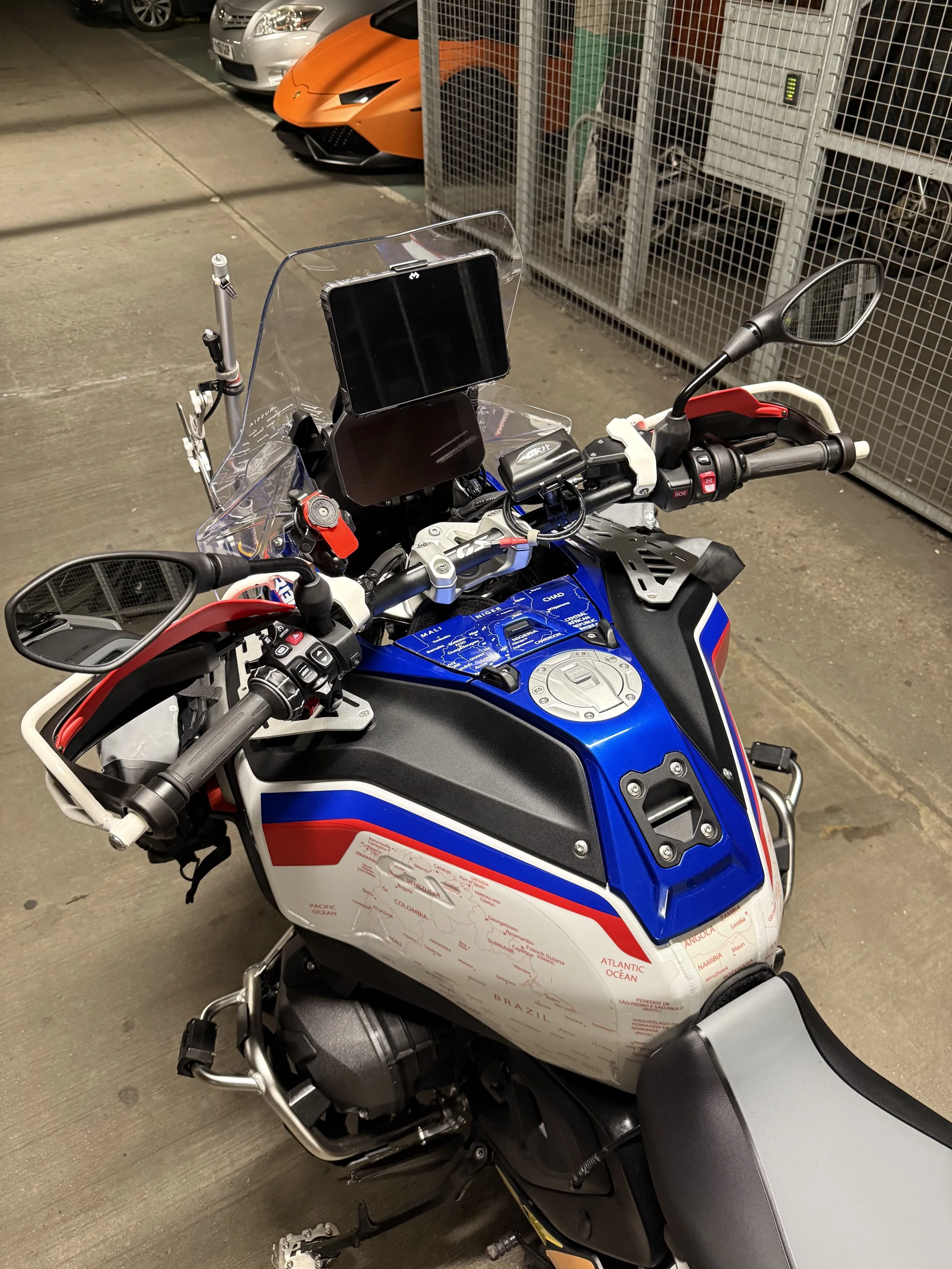 PAY PAL doesn’t give you the colour map option due to the different combinations available according to your bike original colour. For the side tank, the options of the map are red or blue. As for the phone/ key compartment and the side front the colour map is white. If you bought the original BMW high windshield the colour map is white.
